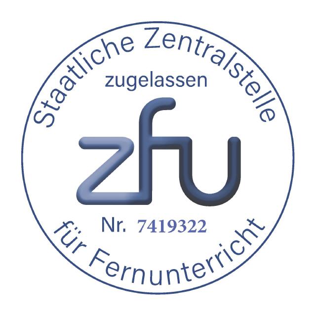Unsere Ausbildung ist von der Staatlichen Zentralstelle für Fernunterricht ZFU als Fernlehrgang mit der Nummer 7419322 offiziell zugelassen.
